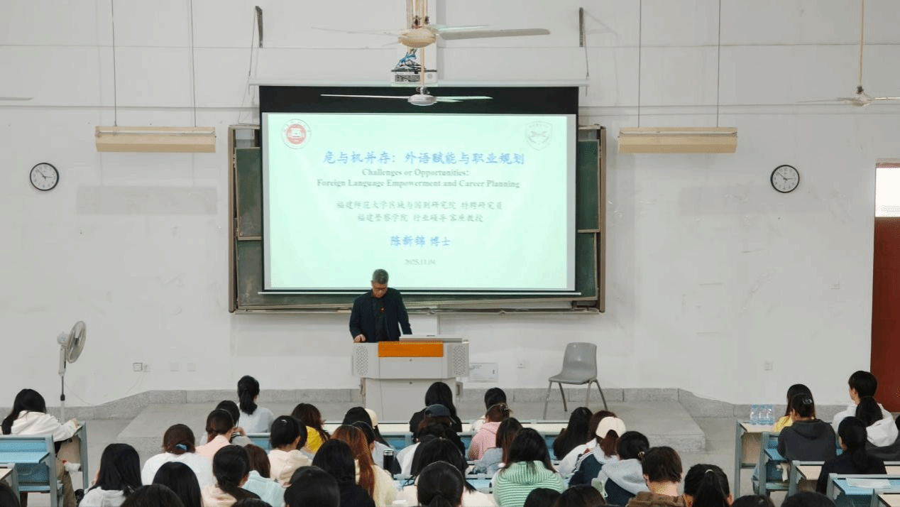 为帮助外语专业学生应对就业挑战、明晰职业发展方向,11月4日下午,外国语学院特邀福建师范大学区域与国别研究院特聘研究员、福建警察学院行业硕导陈新锦博士于非洲厅开展“危与机并存:外语赋能与职业规划”专题讲座。外国语学院学生参与此次讲座。