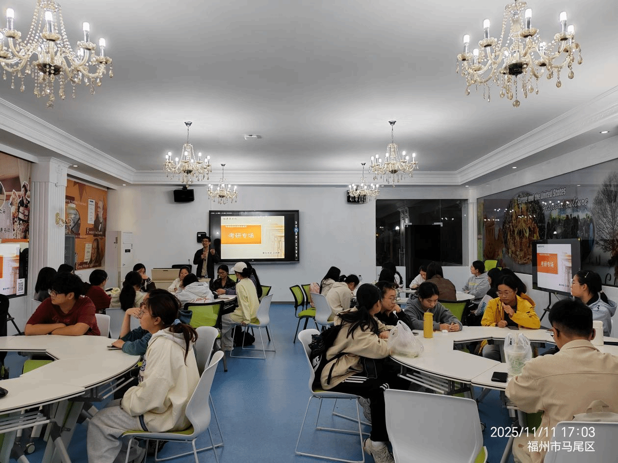 为帮助我院2026年拟考研学生深入了解考研动态、科学规划备考方案,11月11日,我院特邀国内知名考研辅导机构——聚创考研,在外语体验中心成功举办了“外语类专业学生2026年考研规划指导”专题讲座。本次讲座由学院副院长童成寿主持,吸引了近60名2026年有考研意向的学生踊跃参加。
