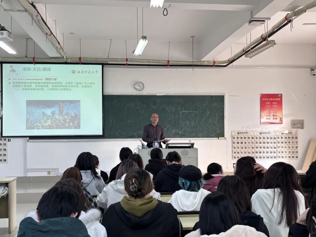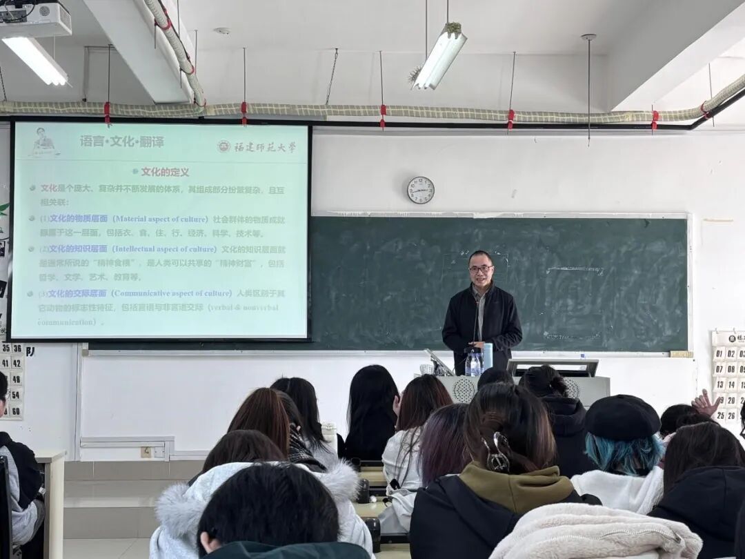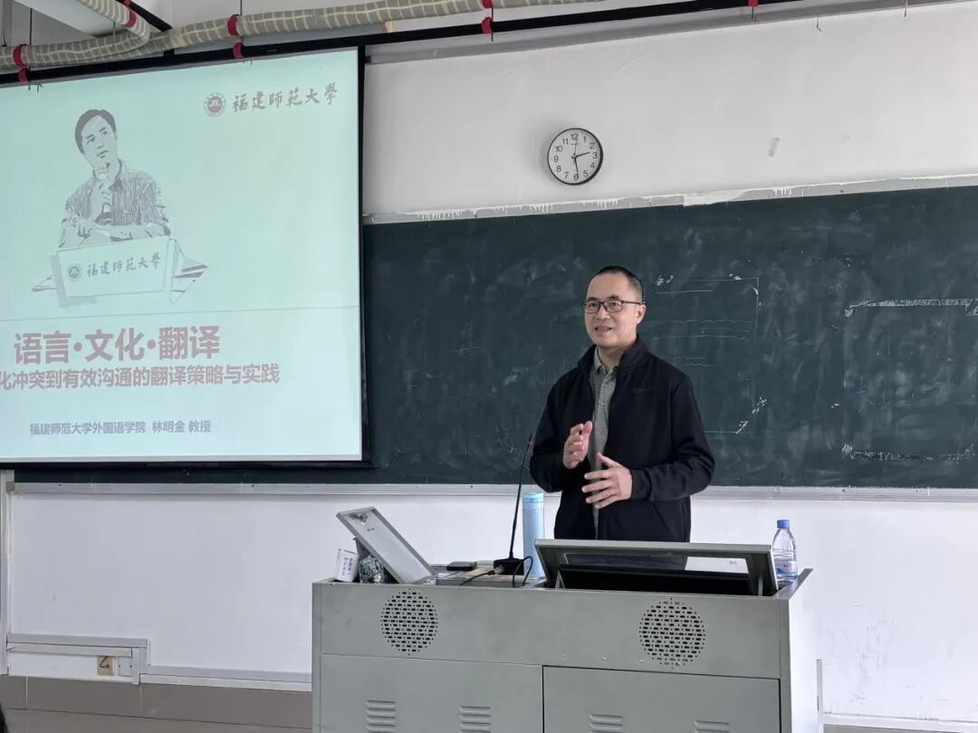 为拓展我院学生国际视野,提升国际传播能力,12月5日下午,福建师范大学林明金教授应邀莅临我院,作题为“语言·文化·翻译——从文化冲突到有效沟通的翻译策略与实践”的专题讲座。讲座由副院长童成寿主持,我院各年级学生代表参加了此次活动。