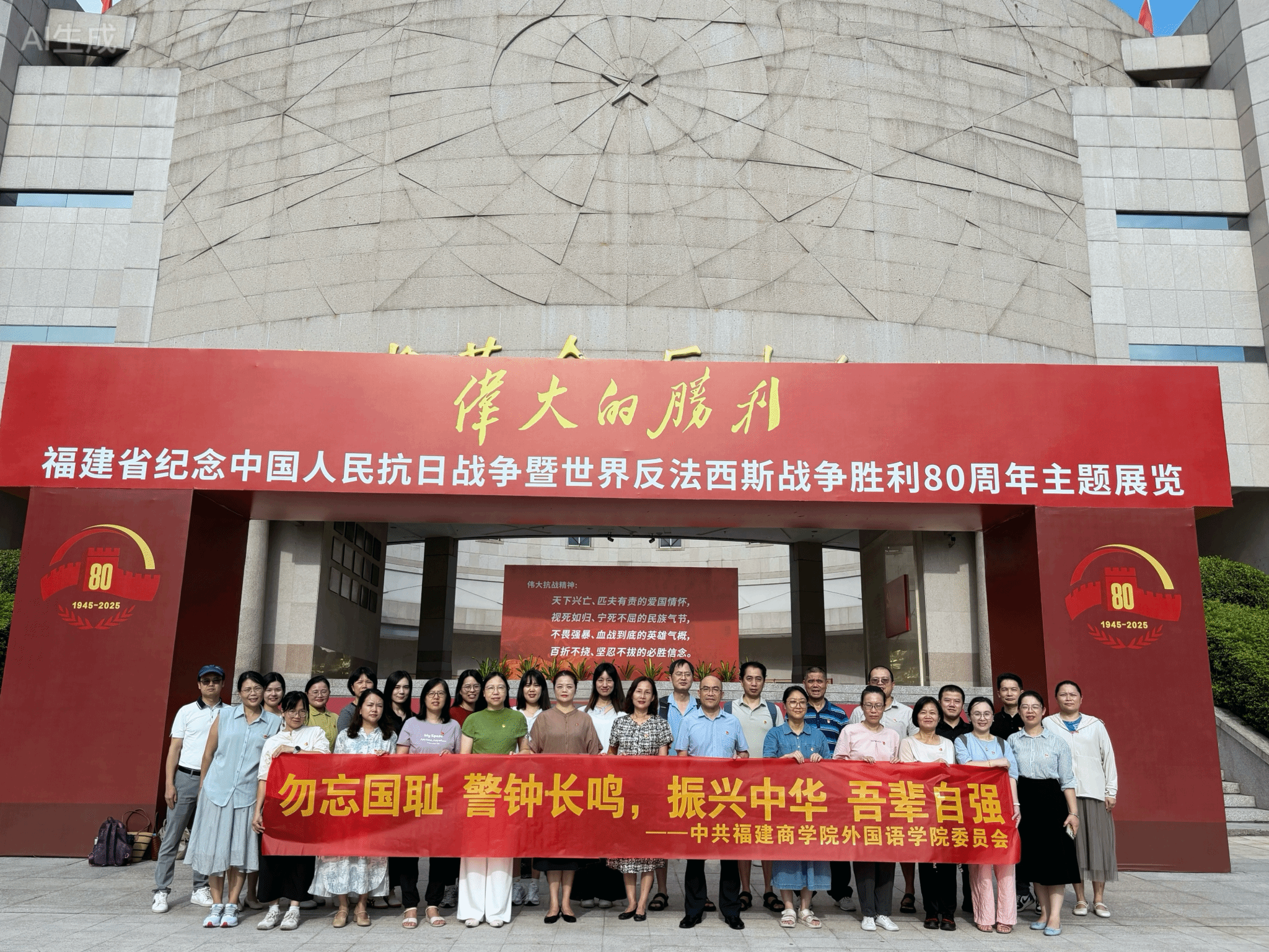 9月30日下午,外国语学院党政班子成员带领学院教师党员前往福建省革命历史纪念馆参观“伟大的胜利——福建省纪念中国人民抗日战争暨世界反法西斯战争胜利80周年”主题展览。