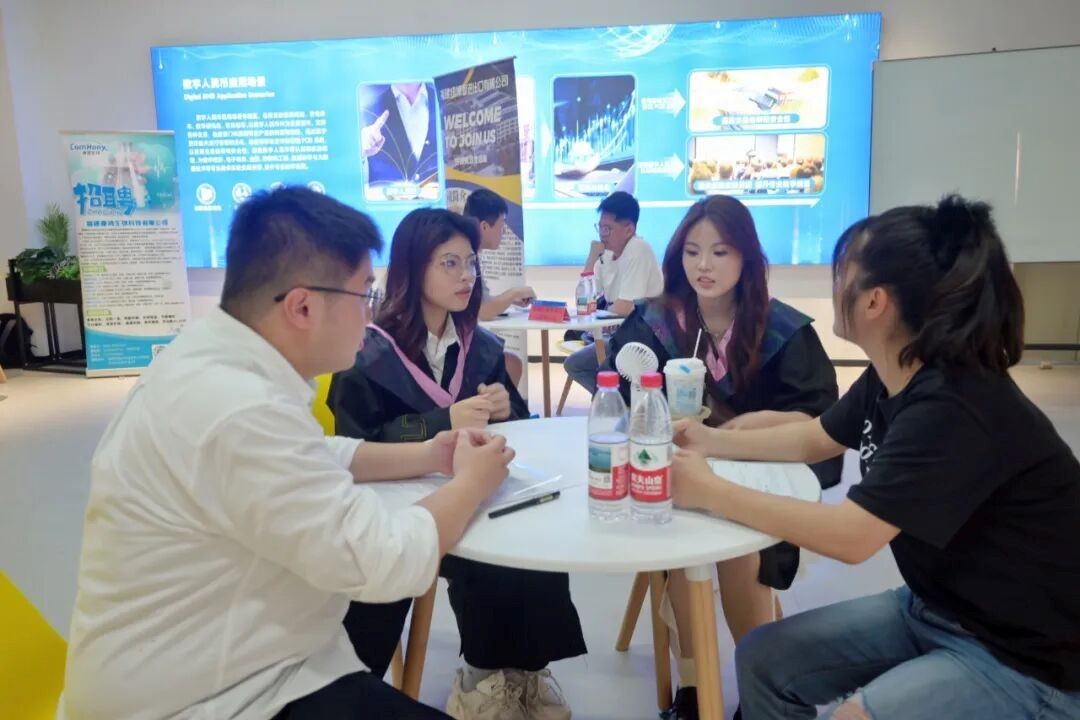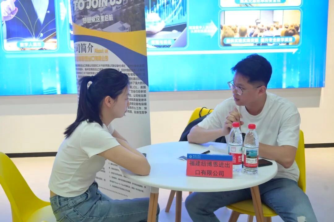 5月14日下午,由外国语学院和国际经贸学院联合举办的“筑梦青春,职引未来”2025届毕业生夏季校园招聘会在马尾校区数字商务实验中心顺利举行。本次招聘会吸引了纵腾集团、福建康鸿生物科技有限公司、福建巨纸包装有限公司等十余家企业参与,涵盖外贸、电商、文化传媒、生物科技等多个行业领域,为毕业生提供了多样化的就业机会。