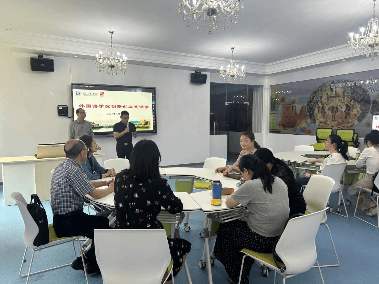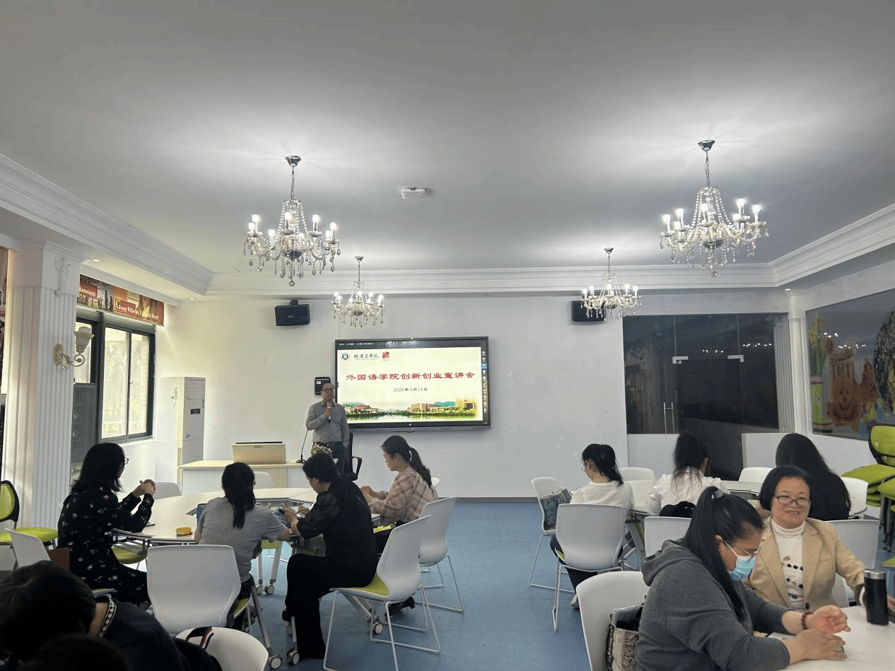 为深入推进学院创新创业教育工作,强化双创师资队伍建设,4月14日,外国语学院邀请校创新创业教育中心吴思锋主任莅临学院,开展创新创业项目宣讲交流指导活动。学院全体教职工参加本次活动。